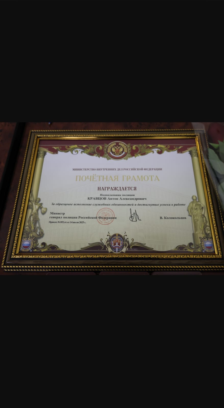 Замначальника полиции награжден Почетной Грамотой МВД РФ